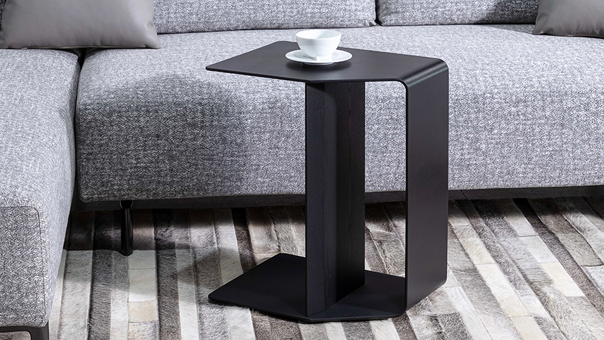一件由面与片构成的趣味性家具产品,以相邻面黄金分割点的连线为切割面,利落的线条呈现出多角度不重样的视觉体验。既是茶几又是轻便书架,能轻松应对沙发、休闲椅甚至床边的置物需求。