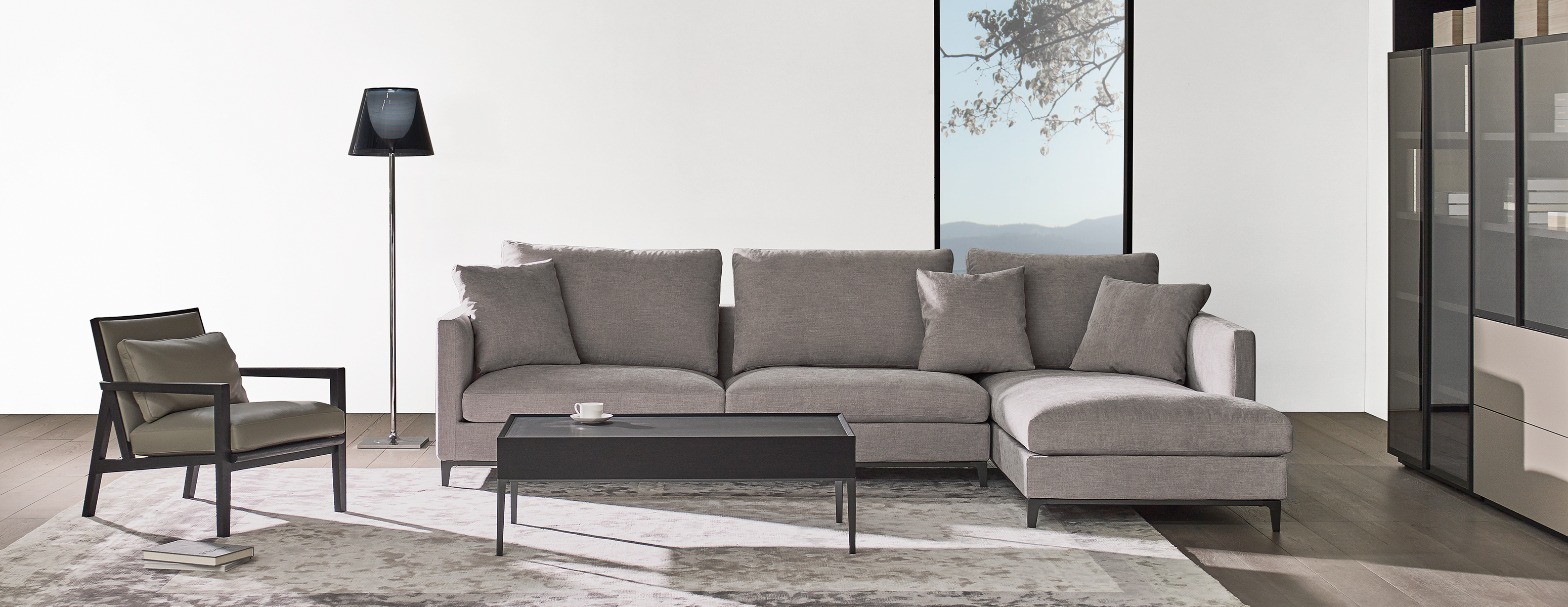 锥型腿造型融合了新古典与现代的设计元素,窄长的扶手与靠背,提升了沙发的空间利用率。