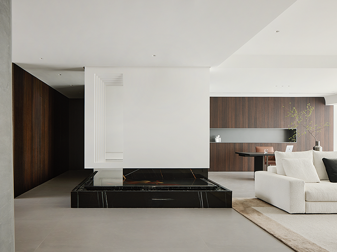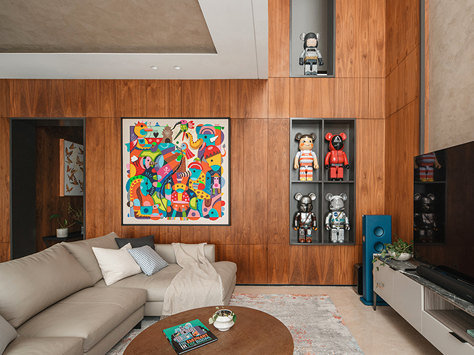本案呈现出一个融合自然美学与现代风格的理想家园,不仅在设计中营造出宁静和谐的氛围,更在细节中彰显业主赵先生一家所追求的,既能远离尘嚣,又能融入生活的状态。